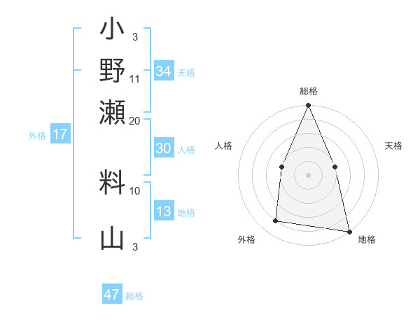 小野瀬 料山さんを姓名の画数から五運を鑑定