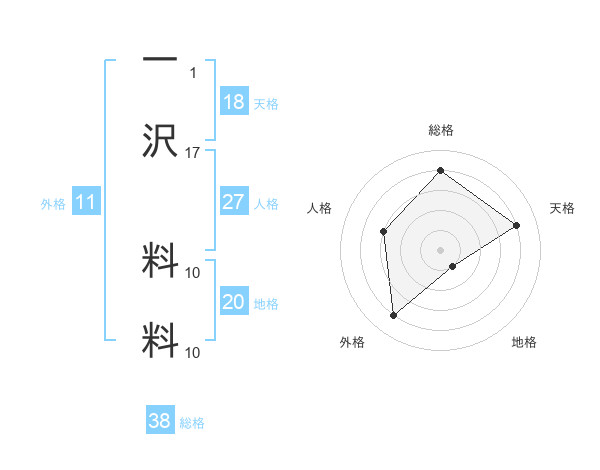 一沢 料料さんの総格は38画の4点!