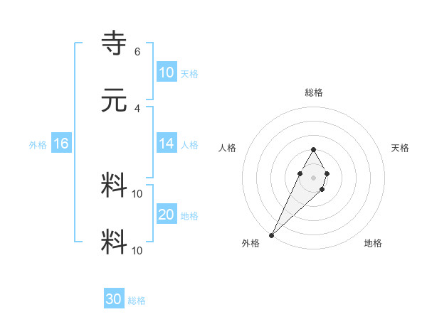 寺元 料料さんの総格は30画の2点!