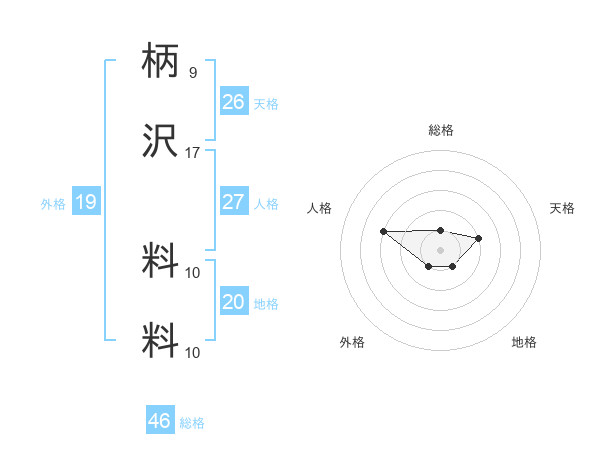 柄沢 料料さんの総格は46画の1点!