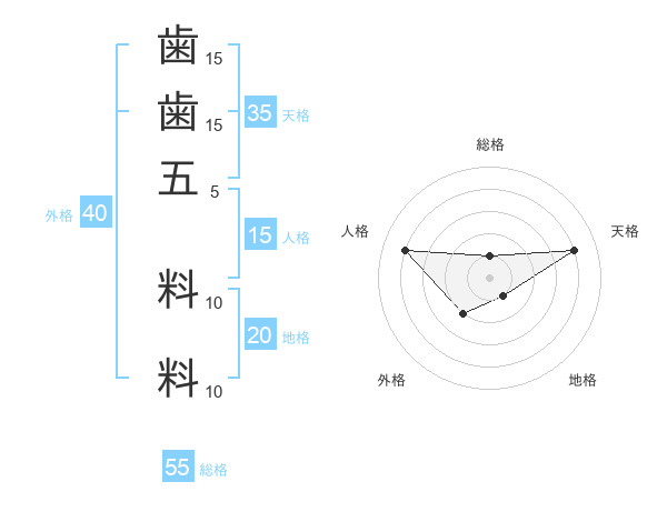 歯歯五 料料さんの総格は55画の1点!