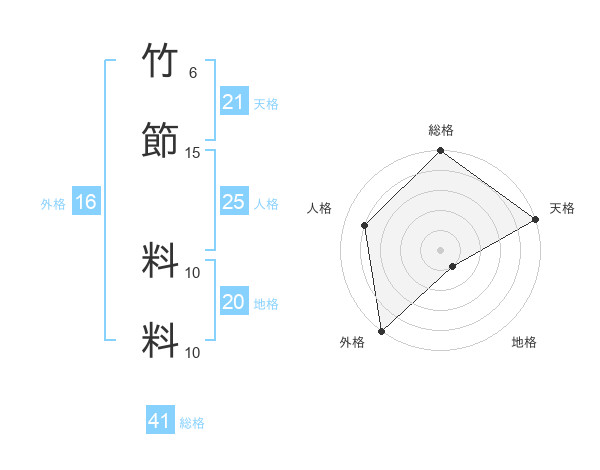 竹節 料料さんの総格は41画の5点!
