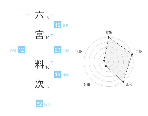 六宮 料次さんの総格は32画の5点!