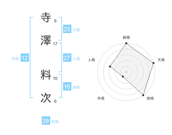 寺澤 料次さんの総格は39画の5点!