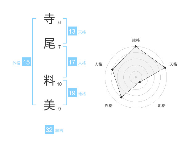 寺尾 料美さんを姓名の画数から五運を鑑定