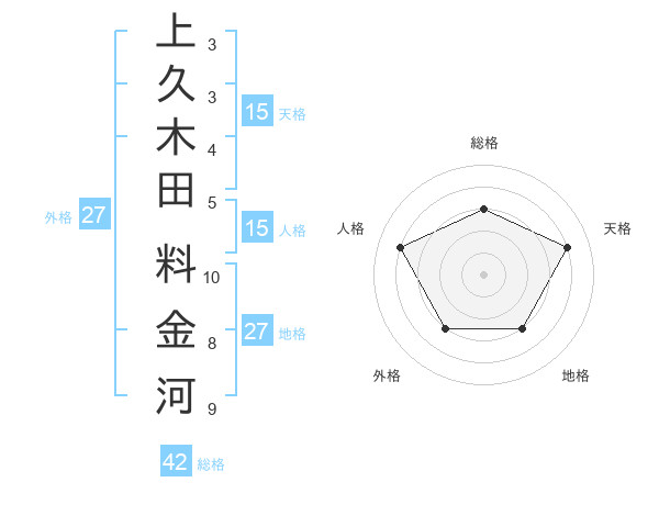 上久木田 料金河さんを姓名の画数から五運を鑑定