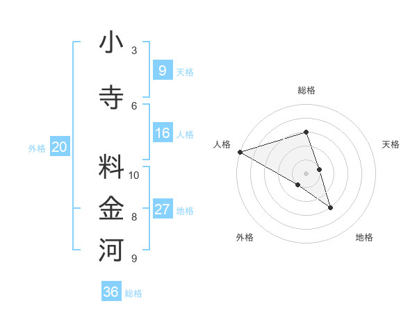小寺 料金河さんを姓名の画数から五運を鑑定