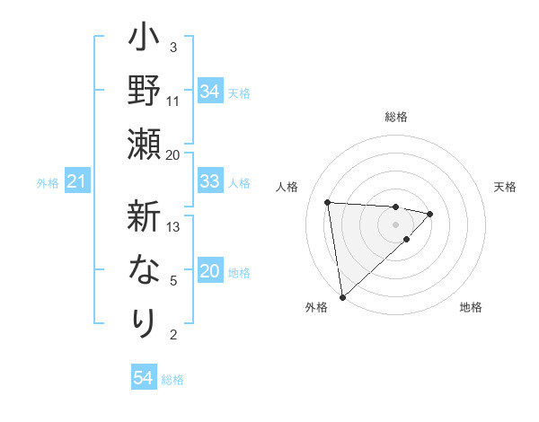 小野瀬 新なりさんを姓名の画数から五運を鑑定