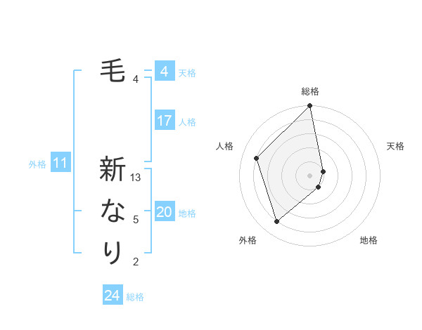 毛 新なりさんの地格は20画の1点!