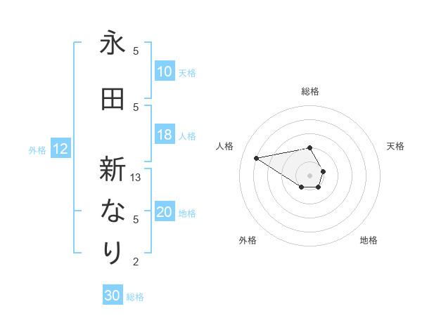 永田 新なりさんの総格は30画の2点!