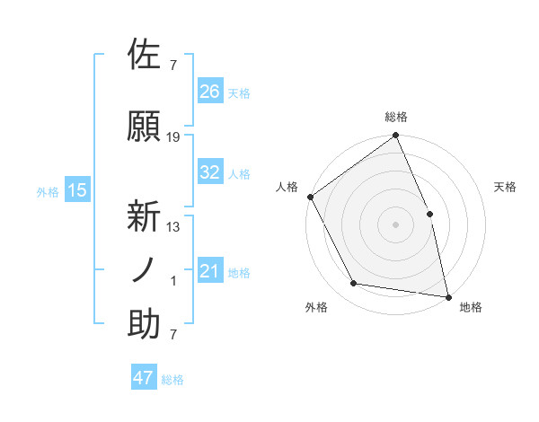 佐願 新ノ助さんを姓名の画数から五運を鑑定