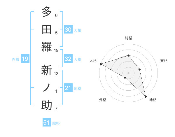 多田羅 新ノ助さんを姓名の画数から五運を鑑定