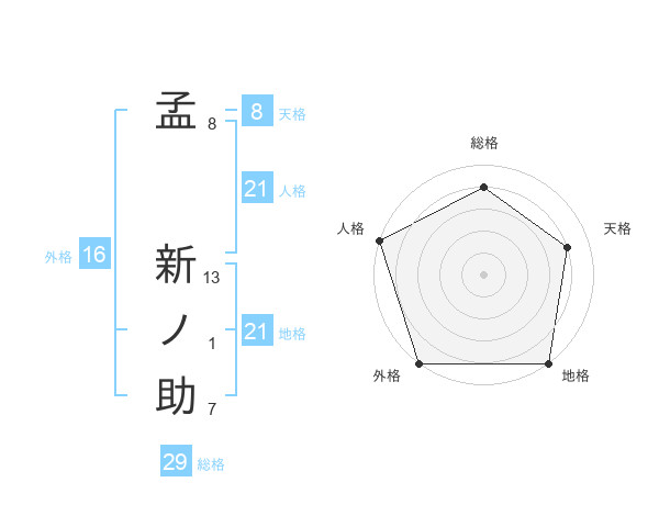 孟 新ノ助さんの地格は21画の5点!