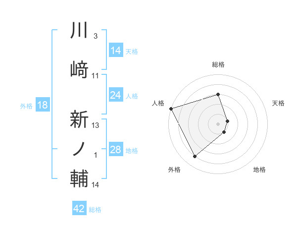 川﨑 新ノ輔さんを姓名の画数から五運を鑑定