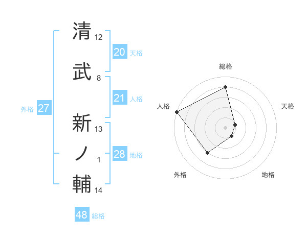 清武 新ノ輔さんの総格は48画の4点!