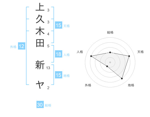 上久木田 新ヤさんの天格は15画の4点!