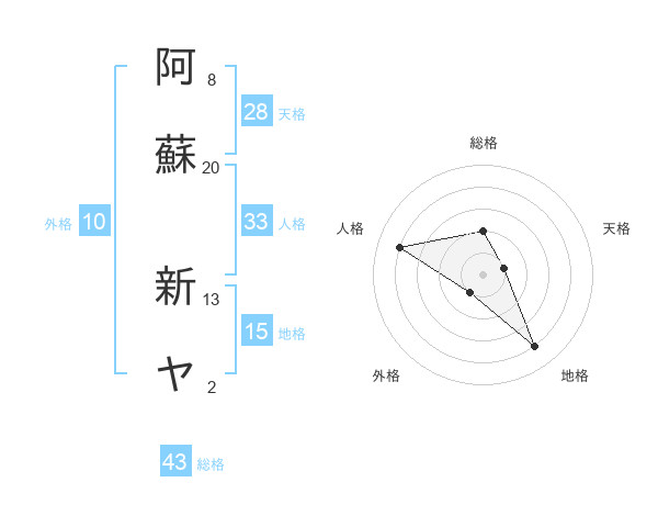 阿蘇 新ヤさんを姓名の画数から五運を鑑定