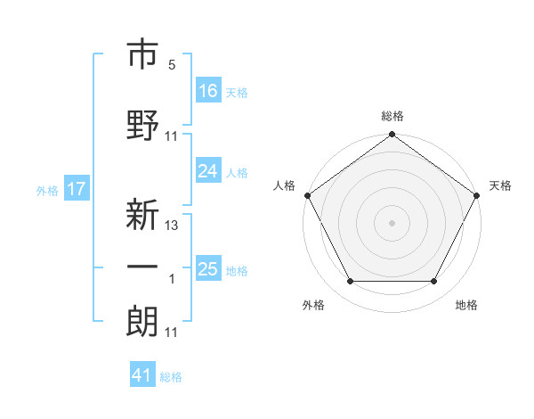 市野 新一朗さんを姓名の画数から五運を鑑定