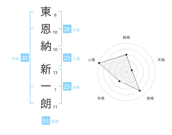 東恩納 新一朗さんの総格は53画の3点!