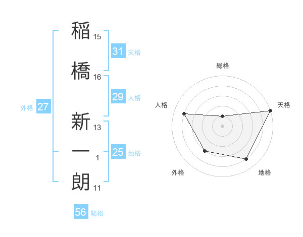 稲橋 新一朗さんを姓名の画数から五運を鑑定