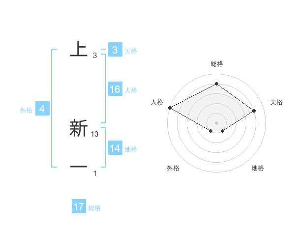 上 新一さんの総格は17画の4点!