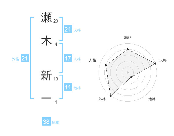 瀬木 新一さんの総格は38画の4点!