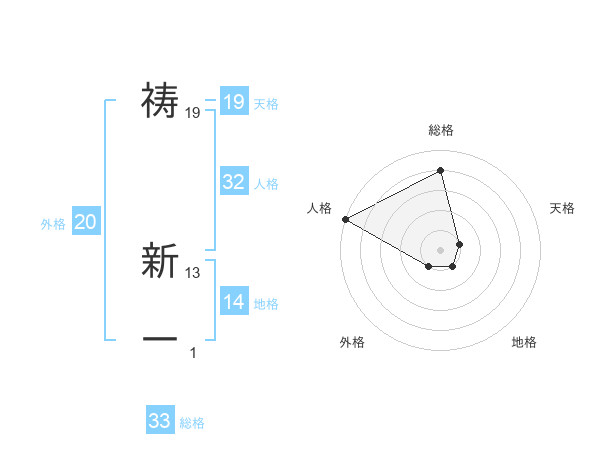 祷 新一さんの天格は19画の1点!