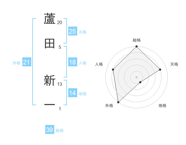 蘆田 新一さんの外格は21画の5点!