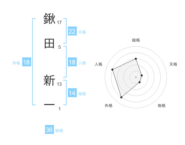 鍬田 新一さんを姓名の画数から五運を鑑定