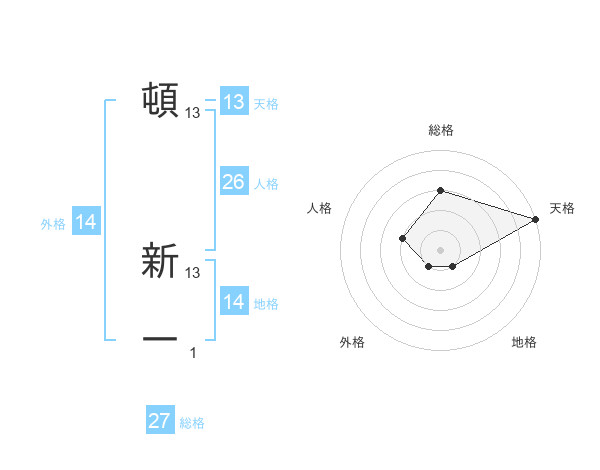 頓 新一さんの天格は13画の5点!