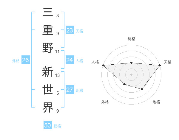 三重野 新世界さんを姓名の画数から五運を鑑定