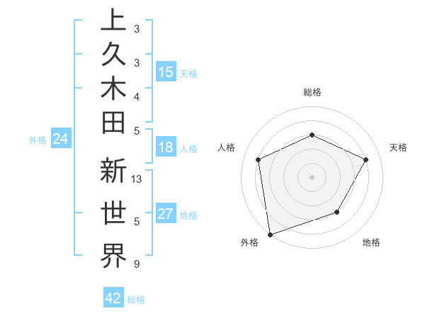 上久木田 新世界さんを姓名の画数から五運を鑑定