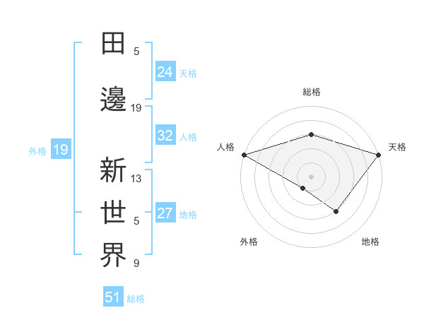 田邊 新世界さんの総格は51画の3点