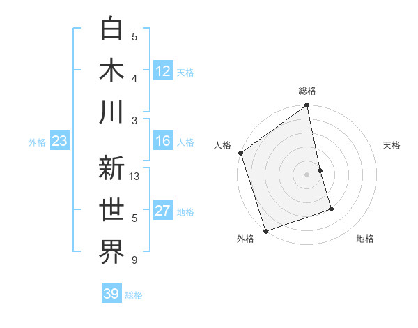 白木川 新世界さんの総格は39画の5点