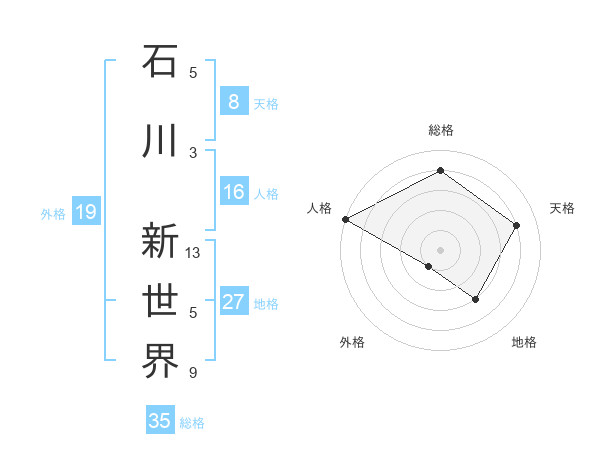 石川 新世界さんの総格は35画の4点