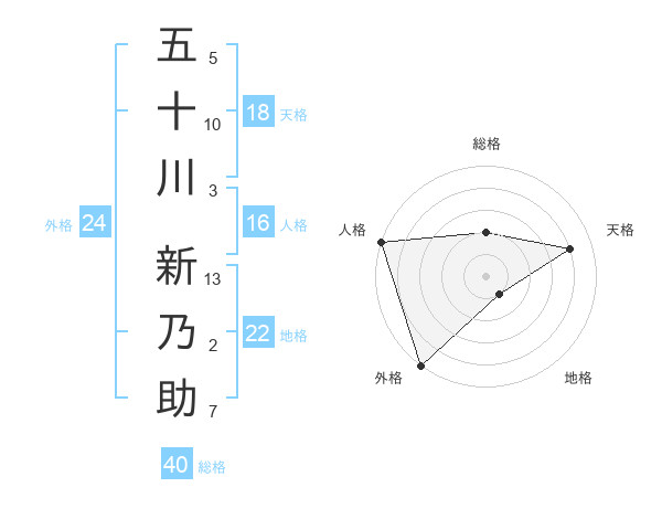 五十川 新乃助さんを姓名の画数から五運を鑑定