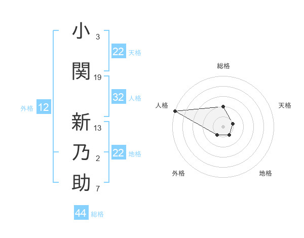 小関 新乃助さんを姓名の画数から五運を鑑定
