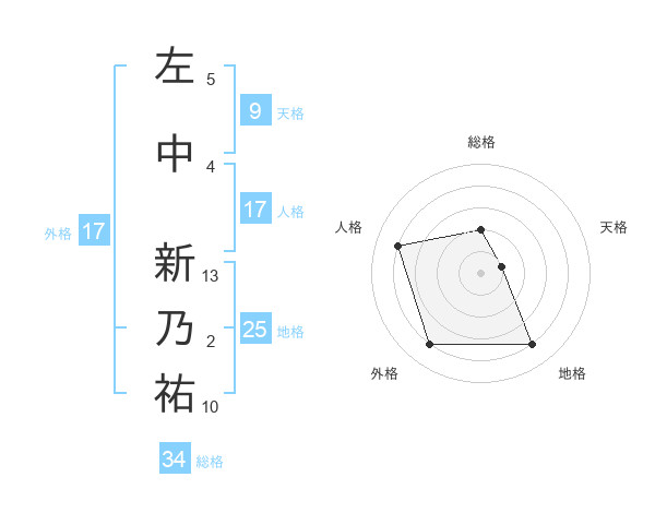 左中 新乃祐さんを姓名の画数から五運を鑑定