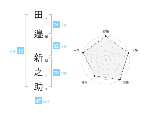 田邉 新之助さんを姓名の画数から五運を鑑定