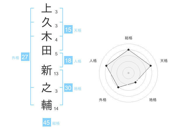 上久木田 新之輔さんを姓名の画数から五運を鑑定