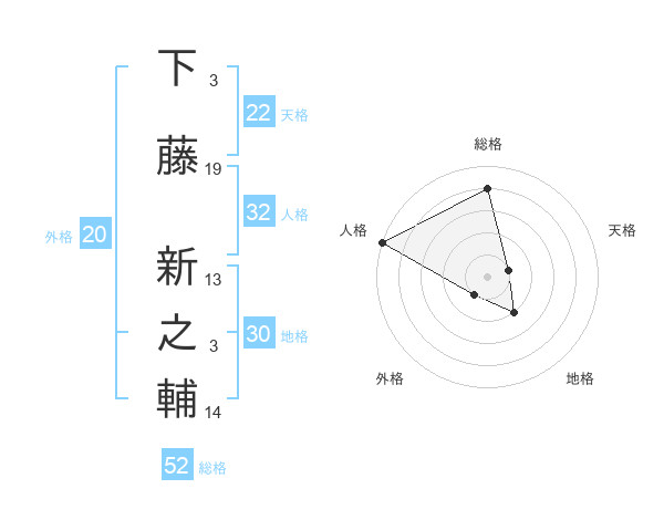下藤 新之輔さんの総格は52画の4点!