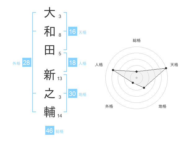 大和田 新之輔さんを姓名の画数から五運を鑑定