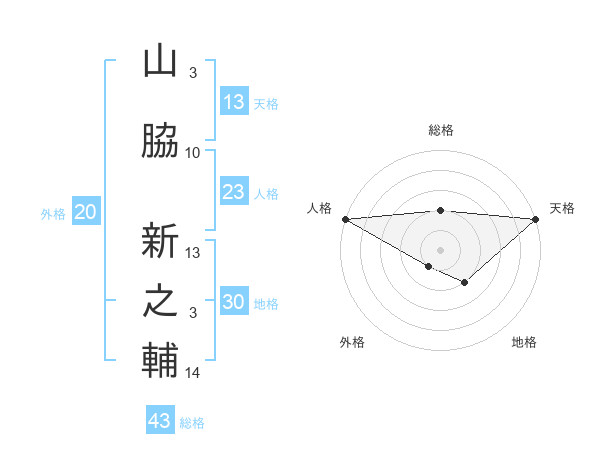 山脇 新之輔さんの総格は43画の2点!