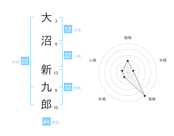 大沼 新九郎さんを姓名の画数から五運を鑑定