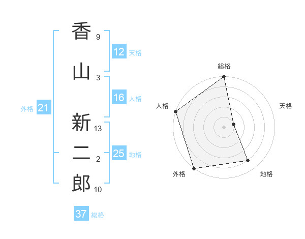 香山 新二郎さんを姓名の画数から五運を鑑定