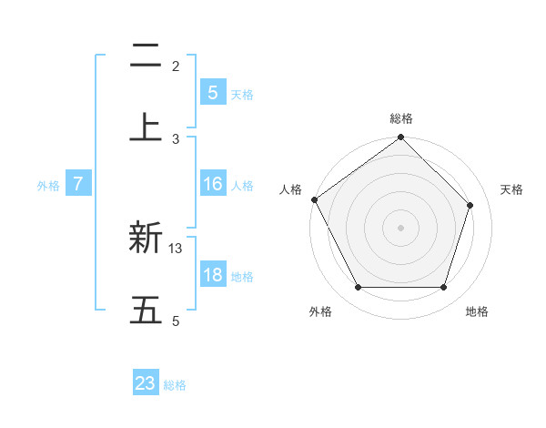 二上 新五さんの総格は23画の5点!