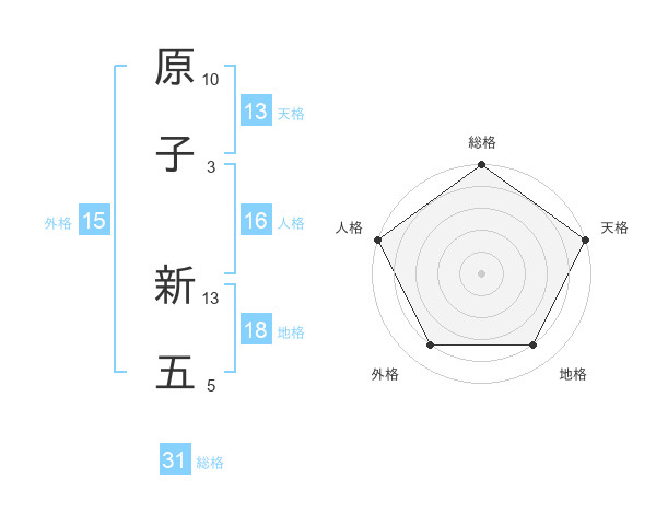 原子 新五さんの総格は31画の5点!
