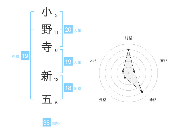 小野寺 新五さんの総格は38画の4点!