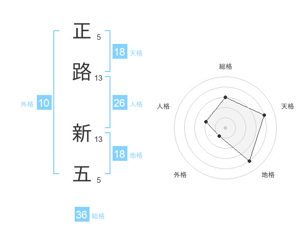 正路 新五さんの天格は18画の4点!