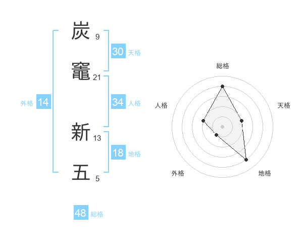 炭竈 新五さんの総格は48画の4点!